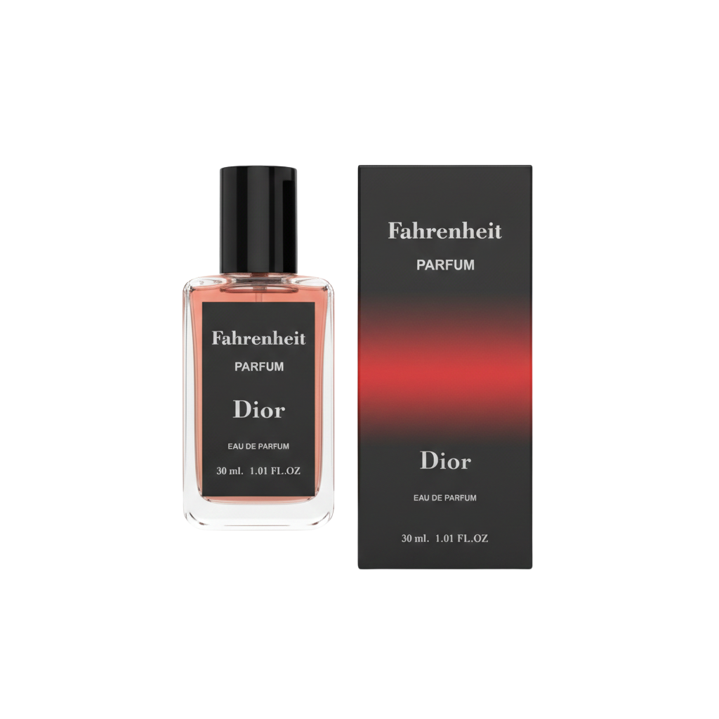 A bold and iconic fragrance inspired by Dior Fahrenheit Eau de Toilette, opening with fresh mandarin and lavender, followed by a unique heart of violet leaf and nutmeg, and settling into a warm base of leather, vetiver, and cedarwood. It smells smoky, slightly leathery, and powerful, creating a strong and distinctive vibe that stands out during evenings and cooler seasons.